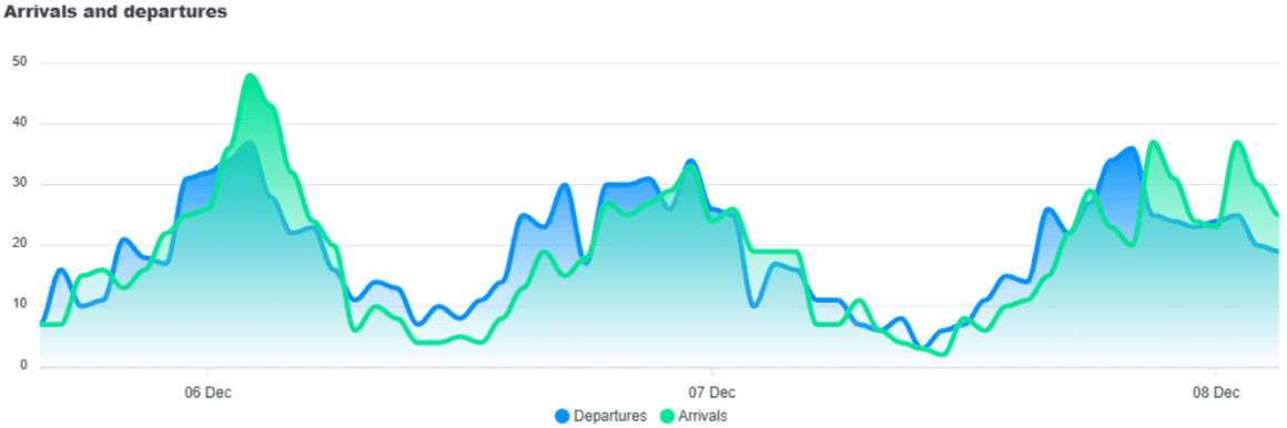 - A peak of 48 arrivals in 1 hour during the FNO.
